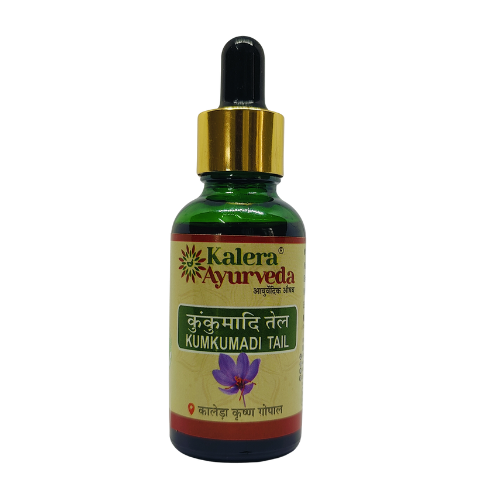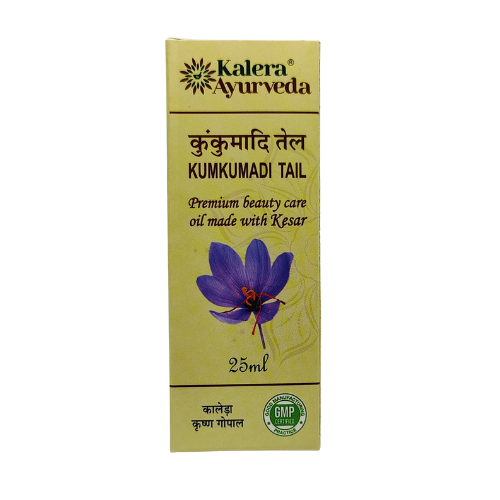 Kalera Ayurveda Kumkumadi Tail is a classical Ayurvedic formulation prepared with saffron and other skin-nourishing herbs. Known as a natural beauty elixir, this oil helps improve skin complexion, reduce dark spots, and promote youthful radiance. Regular application supports hydration, smooth texture, and overall skin wellness, making it an ideal part of daily skincare routines.